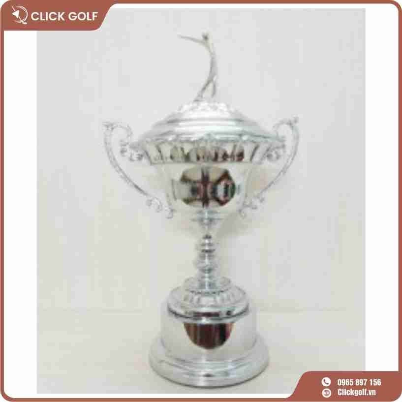 Cúp kim loại màu trắng, phi 250mm, đỉnh golf