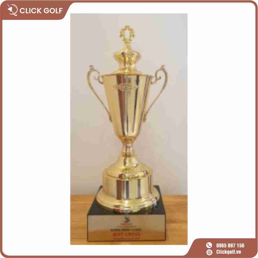 Cúp kim loại màu vàng cao cấp, cao 660mm, phi 180mm, đế gỗ