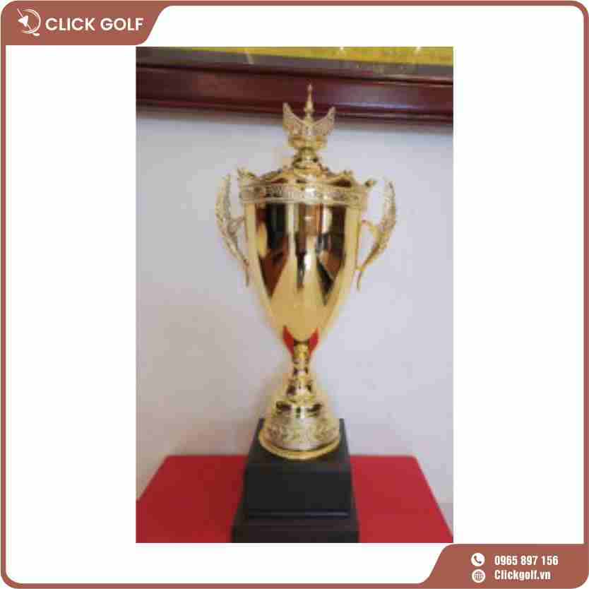 Cúp thể thao kim loại màu vàng cao cấp, đế gỗ, đỉnh vương miện Cao 940mm, phi 280mm